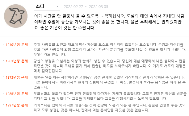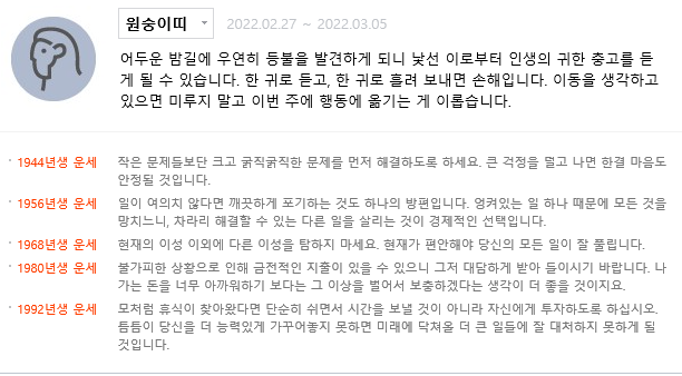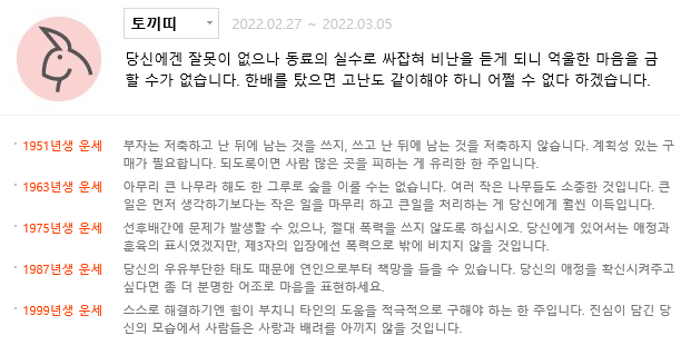 | 3월 둘째주 각띠별 이주의 운세 (0) | 2022.03.08 |